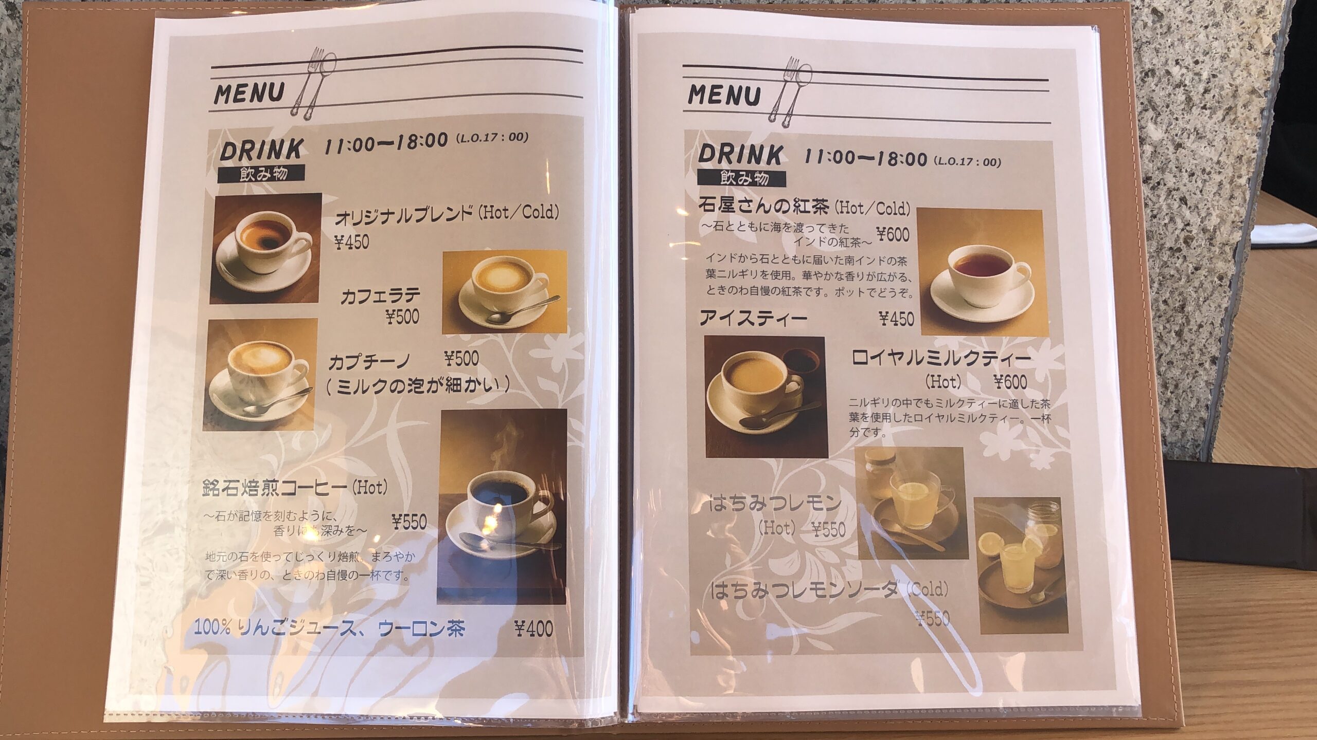 ドリンクメニューはコーヒー・紅茶のほかにも、100%リンゴジュースやはちみつレモン、ウーロン茶もあり、お子様連れでも選びやすいメニューとなっています。