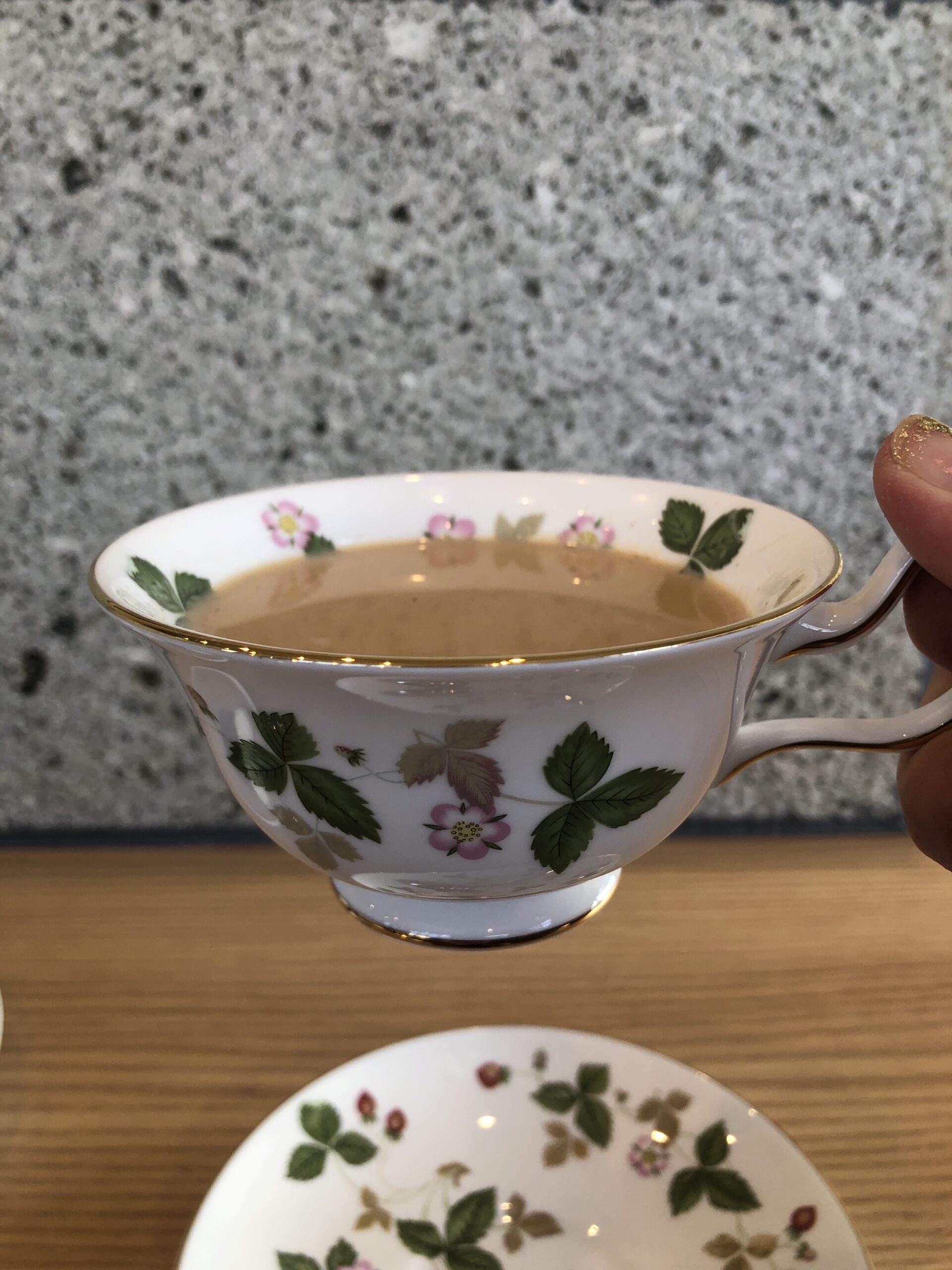 ロイヤルミルクティーはニルギリという南インドの茶葉を使用していて、メニューによると石とともに海を渡ってきたのだとか(‘ω’)ノ